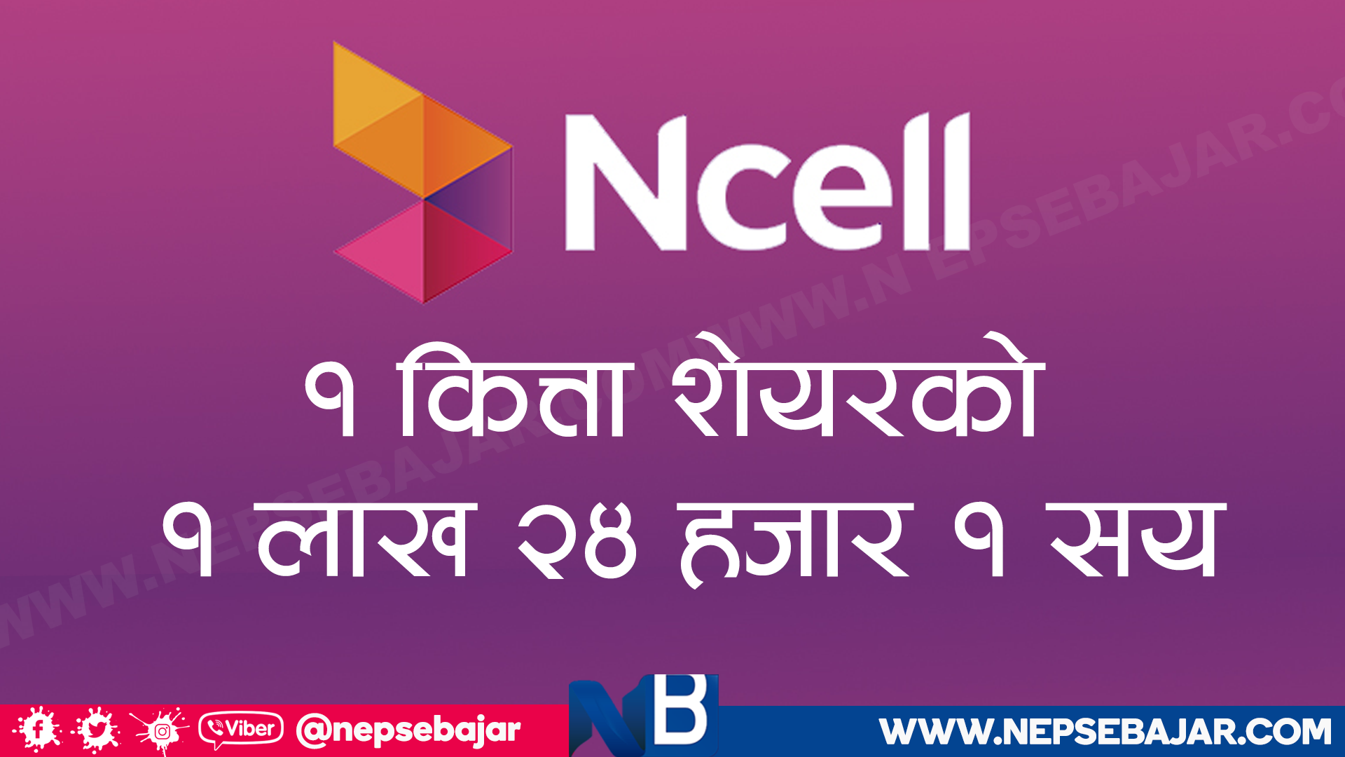 एनसेलको १ कित्ता शेयर एक लाख २४ हजार एक सयमा बिक्रि , सर्बसाधारणलाई कति पर्ला ?