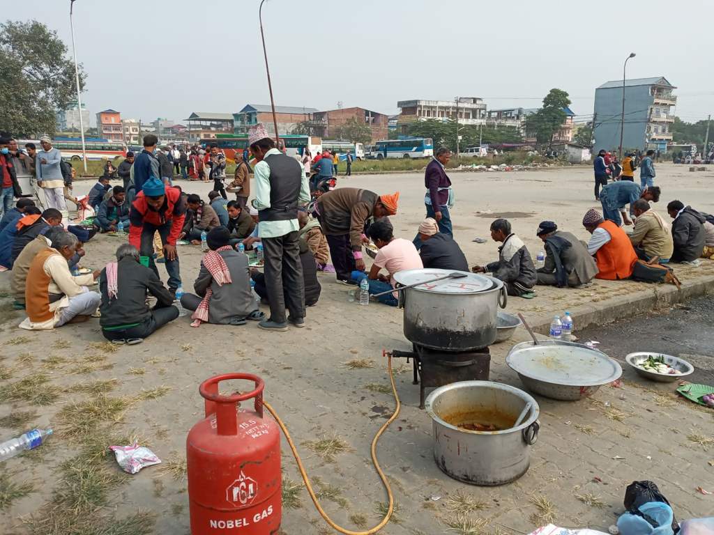 एमाले महाधिवेशनमा सहभागी हुन आएकाले सडकमै खाना बनाएर खाए
