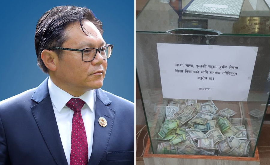दान पेटिकामा जम्मा भएको रकममा तलब थपेर दुर्गमको विद्यालयलाई सहयोग गर्ने मन्त्री किरातीको घोषणा।
