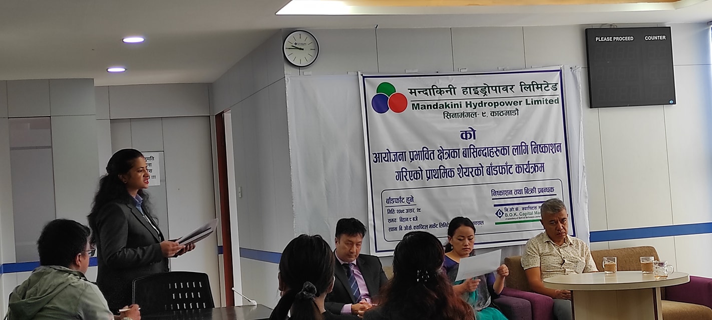 मन्दाकिनी हाइड्रोपावरको शेयर रजिष्ट्रारमा बि.ओ.के. क्यापिटल