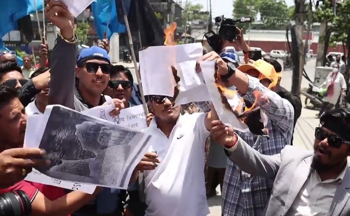 भारतीय दूतावास अगाडि राप्रपाकाे युवा संगठनले जलायो ‘अखण्ड भारत’काे नक्सा